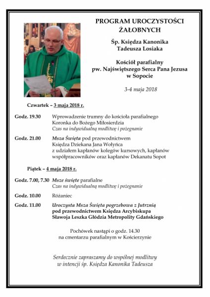 Co prawda to inny dekanat, ale naszą Parafię dzieli od tej sopockiej parafii las i tory, łączymy się w modlitwie i pamięci za zmarłego + ks. Proboszcza Tadeusza.