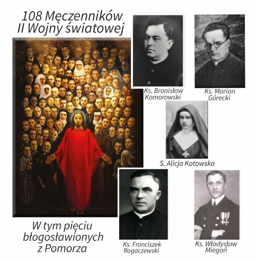 12 czerwca przypada w Kościele katolickim wspomnienia 108 błogosławionych Męczenników II Wojny światowej. Wśród beatyfikowanych Męczenników jest pięciu z Naszej Archidiecezji, którzy przed wojną posługiwali w Gdańsku, Gdyni i Wejherowie: s. Alicja Kotowska CR (właśc. Maria Jadwiga Kotowska) przełożona klasztoru Zmartwychwstanek w Wejherowie, a także dyrektor Szkoły katolickiej w Wejherowie nauczająca chemii, zamordowana w Piaśnicy 11.11.1939 r. Ks. Kmdr ppor Władysław Miegoń kapelan WP z Gdyni Oksywia zamordowany 15.10.1942 r. w KL Dachau, ks. Franciszek Rogaczewski proboszcz polskiej parafii Chrystusa Króla w Gdańsku zamordowany w KL Stutthof 11.01.1940 r. w pierwszej grupie Polaków więźniów obozu Stutthof, ks. Bronisław Komorowski proboszcz polskiej parafii św. Stanisława Bp.M. w Gdańsku Wrzeszczu zamordowany 22.03.1940 r. w KL Stutthof, ks. Marian Górecki kapelan Westerplatte zamordowany w KL Stutthof 22.03.1940 r.