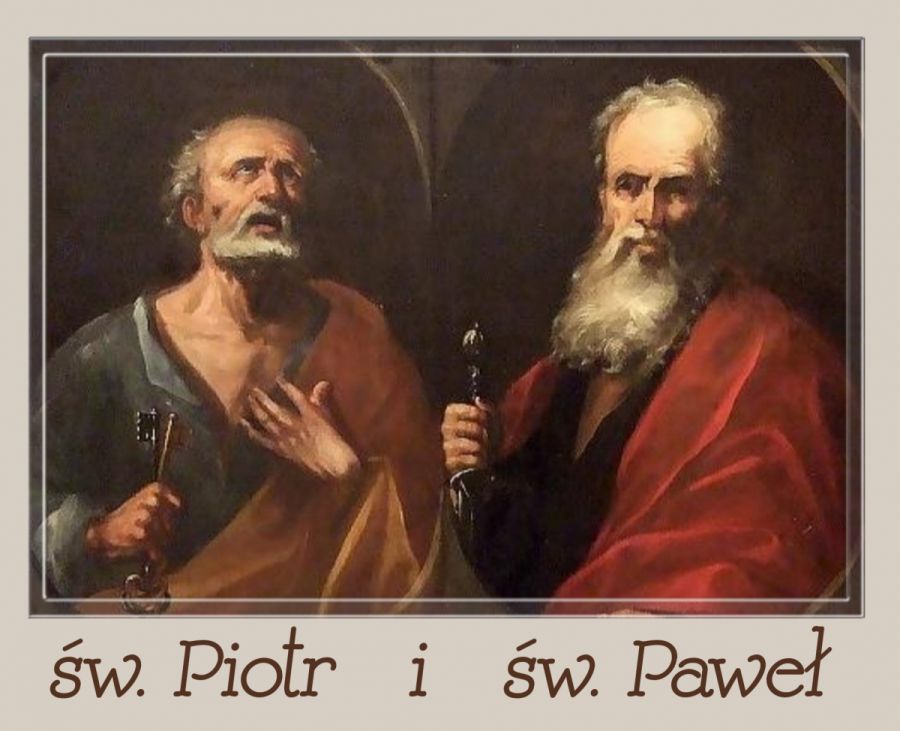 29 czerwca obchodzimy Uroczystość Świętych Apostołów Piotra i Pawła. Obaj ponieśli śmierć męczeńską w Rzymie. Święty Piotr otrzymał prymat od Pana Jezusa. Święty Paweł nazywany jest Apostołem Narodów ze względu na liczne podróże misyjne. Jako pierwszy głosił Dobrą Nowinę w Europie.