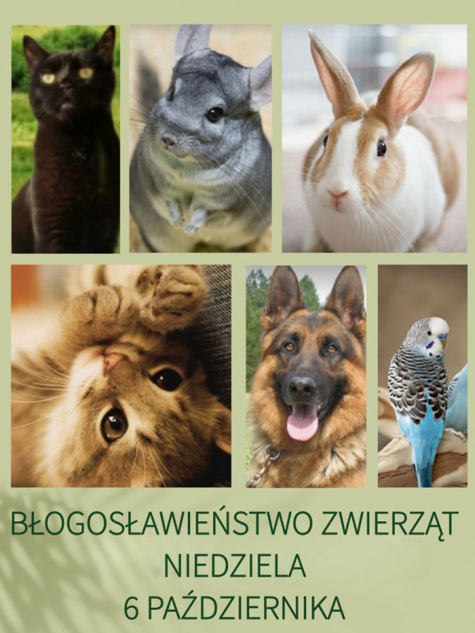 W niedzielę 6 października o godzinie 15:00 przed Domem Parafialnym będzie błogosławieństwo zwierząt. Zapraszamy z pupilami.