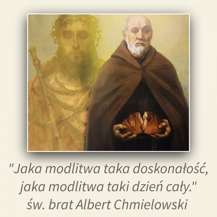 Dziś wspominamy św. Brata Alberta Chmielowskiego. Adam Chmielowski jako młody chłopak wstępuje do szkoły kadetów w Petersburgu, ochoczo bierze udział w powstaniu styczniowym i w jednej z bitew traci nogę. Odtąd nosi protezę i kończy przygodę z wojaczką. Odkrywa w sobie talent malarski i zaczyna studia na Akademii Sztuk Pięknych w Monachium. Bez reszty oddaje się malarstwu. Malując, zadaje sobie pytanie: czy służąc sztuce, służę także Bogu? Zmaga się wewnętrznie ze sobą, a środowisko artystyczne nie daje mu radości. Po głowie krążą mu pytania o sens życia i zbawienie. Wstępuje nawet do nowicjatu jezuitów, ale tam też nie znajduje swojego miejsca. W Krakowie spotyka skrajną biedę materialną i moralną. Wreszcie odnajduje swoje powołanie – służyć najbiedniejszym i opuszczonym. „Cóż im dam, jeśli nie siebie?” – pisze w swoim notatniku. W krakowskim kościele oo. Kapucynów przywdziewa szary zgrzebny habit III Zakonu św. Franciszka i przyjmuje nowe imię – Brat Albert. W swoim notatniku pisze: „Umarł Adam Chmielowski a narodził się Brat Albert.” W roku 1888 składa śluby zakonne i daje początek Zgromadzeniu Braci Albertynów, a 3 lata później Zgromadzeniu Sióstr Albertynek. Dla biedaków z ulicy zaczyna organizować domy opieki i przytułki. Staje się bratem, a nawet ojcem i opiekunem najbiedniejszych. Staje się jednym z nich. Kiedyś przyjaciel zapytał Brata Alberta, czy w końcu odnalazł szczęście, odpowiedział ze szczerym uśmiechem: „Mam schroniska i stowarzyszenia mych braci w Krakowie, Tarnowie, we Lwowie, w Zakopanem. Rozdałem w tym roku 20 tysięcy bochenków chleba, 12 tysięcy porcji kaszy, daję nocami dach nad głową setkom tych, którzy go nie mają. Niech ci, bracie, to służy za odpowiedź! “