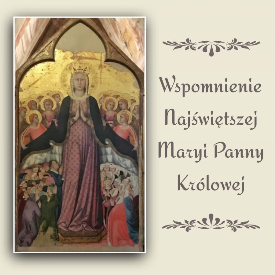 Dzisiaj przypada wspomnienie Najświętszej Maryi Panny Królowej, wprowadzone do kalendarza liturgicznego przez Piusa XII encykliką Ad caeli Reginam (Do Królowej Niebios) z 11 października 1954 roku, w 100. rocznicę ogłoszenia dogmatu o Niepokalanym Poczęciu NMP.