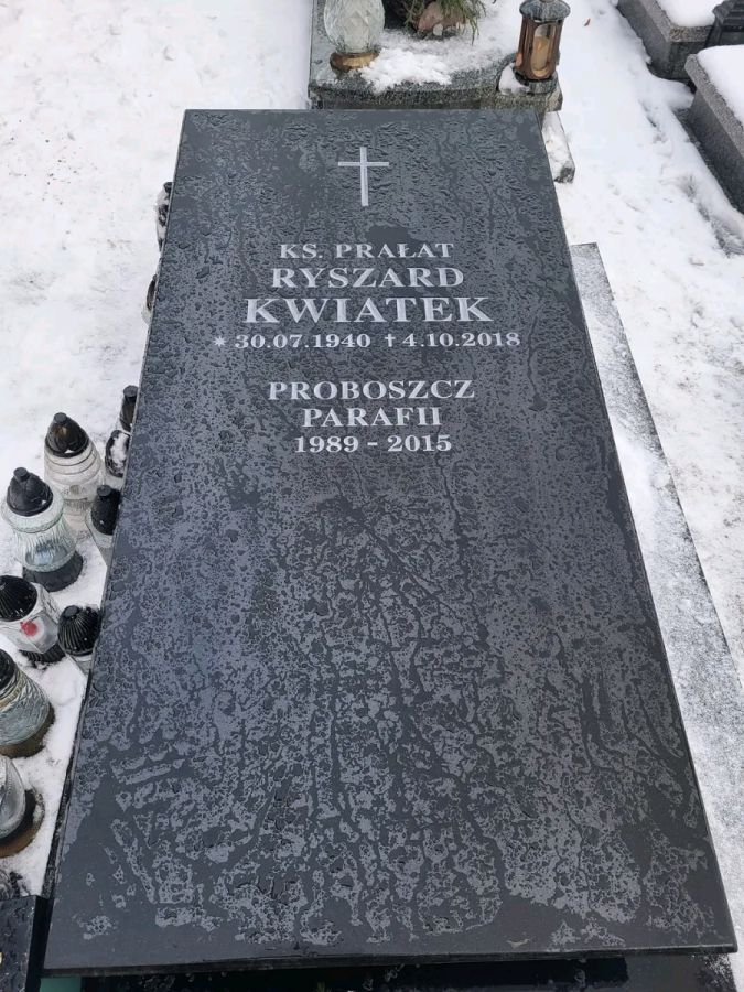 Dzisiaj wczesnym popołudniem firma kamieniarska p. Zygmunta wymieniła płytę nagrobną na grobie śp. ks. Prał. Ryszarda Kwiatka. Na krawędziach płyty dwa lata temu pojawiły się cztery pęknięcia. Bardzo dziękujemy za pomoc.