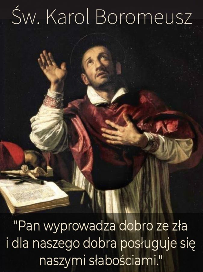 4 listopada wspominamy w liturgii św. Karola Boromeusza Karol urodził się 3 października 1538 r. jako syn arystokratycznego rodu. Od dzieciństwa przeznaczony był do stanu duchownego, więc bardzo szybko został włączony w przygotowanie do kapłaństwa. Posyłany na studia zdobył gruntowne wykształcenie na najlepszych renesansowych uniwersytetach. Gdy jego wuj został papieżem Piusem IV- ściągnął go do siebie do Rzymu jeszcze przed święceniami kapłańskimi, uczynił kardynałem i najbardziej zaufanym współpracownikiem. Mianował go również arcybiskupem Mediolanu, choć z uwagi na obowiązki w Państwie Kościelnym Karol nie mógł mieszkać w swojej diecezji. Mimo wysokiego pochodzenia i zawrotnej kariery – był człowiekiem skromnym, uczciwym, nie łasym na urzędy i godności. Przy doborze współpracowników i nadawaniu godności kościelnych przede wszystkim zwracał uwagę na charakter kandydata i jego przydatność do danej posługi. Tępienie karierowiczostwa szybko przysporzyło mu wrogów, gdy więc jego wuj – papież umarł, Karol musiał szybko opuścić Rzym. U czynił to jednak z radością, bo od dawna chciał bezpośrednio zajmować się swoją diecezją – Mediolanem. Od razu dał się poznać jako pracowity reformator. Zakładał seminaria duchowne – przez co jest uznawany właściwie za ich twórcę. Włączył się również w prace ciągnącego się od kilkunastu lat Soboru Trydenckiego, próbującego uporządkować sytuację w Kościele po wybuchu Reformacji. Dzięki jego pracowitości i obrotności Sobór udało się dokończyć i szybko zacząć wcielać w życie jego postanowienia. Od początku żyjący skromnie i dzielący się swoim niemałym majątkiem z najuboższymi był fundatorem różnych przytułków: dla bezdomnych, dla upadłych dziewcząt i kobiet, oraz kilku sierocińców. Kiedy za jego pasterzowania wybuchła w Mediolanie kilka razy epidemia, kardynał Karol nakazał otworzyć wszystkie spichlerze i rozdać żywność ubogim. Podczas zarazy w 1576 r. niósł pomoc chorym, karmiąc nawet 60-70 tysięcy osób dziennie; zaopatrywał umierających; oddał cierpiącym wszystko, nawet własne łóżko. W 1572 r. na konklawe był poważnym kandydatem na papieża. Zmarł w Mediolanie 3 listopada 1584 r. zarażony febrą w czasie odprawiania własnych rekolekcji. Pozostawił po sobie duży dorobek pisarski. Beatyfikowany w 1602 r., kanonizowany przez Pawła V w 1610 r. Jego relikwie spoczywają w krypcie katedry mediolańskiej. Szczególnie czczony jest jako patron proboszczów i profesorów seminariów duchownych, bibliotekarzy oraz instytutów wiedzy katechetycznej.