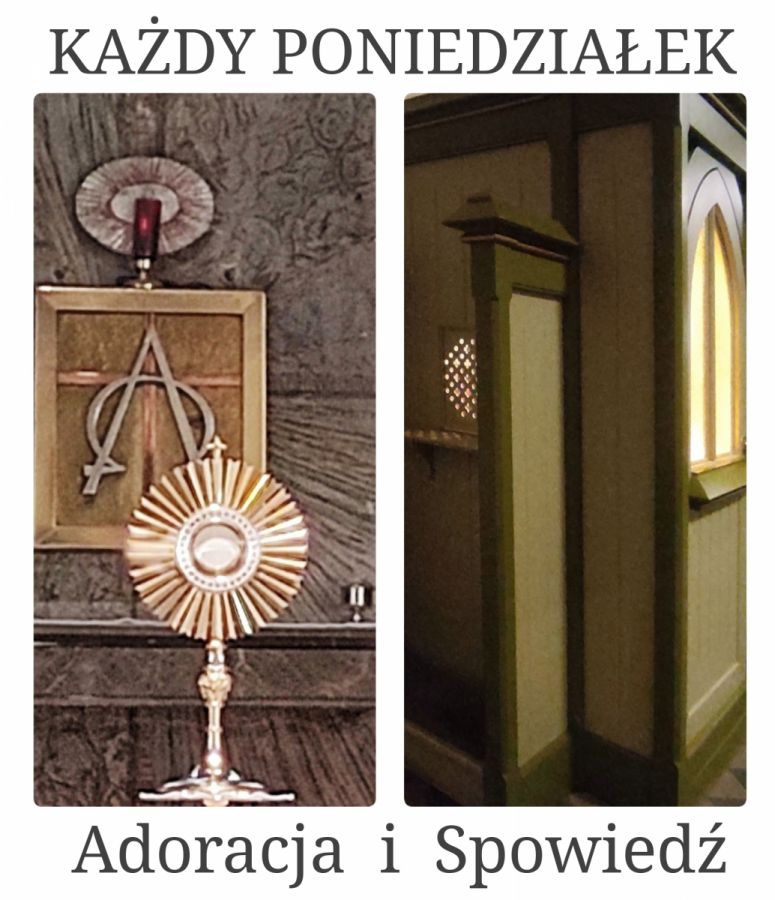 Zapraszamy w każdy poniedziałek na Adorację Najświętszego Sakramentu w ciszy po wieczornej Mszy świętej od godziny 18.30 do 19.30. W trakcie Adoracji można skorzystać z Sakramentu pokuty i pojednania.