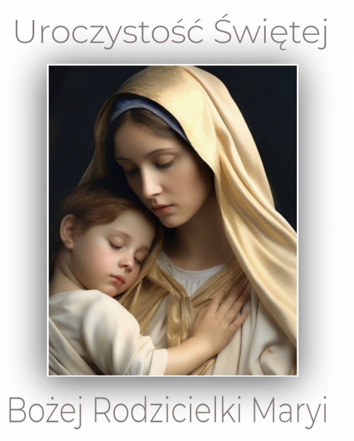 Obchodzona 1 stycznia uroczystość Świętej Bożej Rodzicielki Maryi to najstarsze w Kościele maryjne święto i jednocześnie pierwsze z przyjętych imion Maryi z Nazaretu. Boskie macierzyństwo jest pierwszym i najważniejszym przywilejem Maryi, z którego wynikają wszystkie inne przyczyny jej czci i szczególnej roli w Kościele. Święto Boskiego Macierzyństwa wprowadził do liturgii papież Pius XI w 1931 r., chcąc w ten sposób uczcić 1500. rocznicę Soboru Efeskiego (431 r.), na którym przyznano Maryi tytuł “Theotokos” (Bogarodzica).Jako datę święta papież wyznaczył dzień 11 października. Po reformie liturgicznej w 1969 r. święto to podniesiono do najwyższej rangi (jest to tzw. “święto nakazane” czyli związane z obowiązkiem uczestnictwa we Mszy Św.) i przesunięto na 1 stycznia, czyli na ostatni dzień oktawy Bożego Narodzenia. Podkreśla to ścisły związek między prawdą o Bożym Narodzeniu i Boskim Macierzyństwie Maryi.