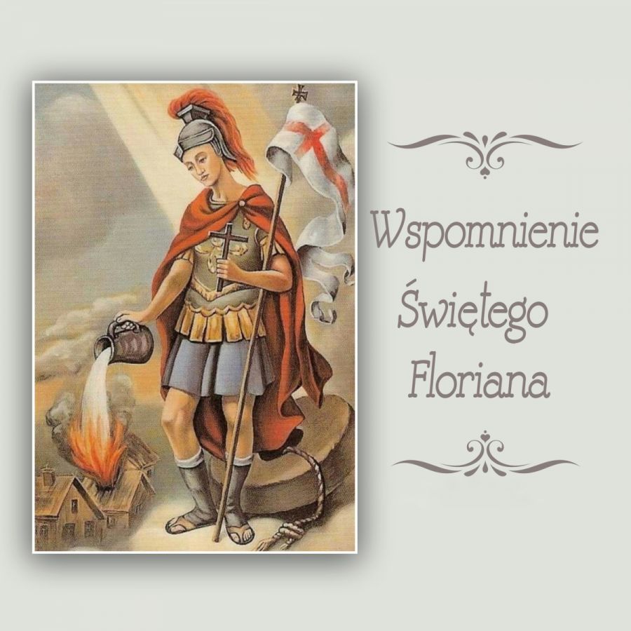Św. Florian z Lauriacum żył pod koniec III wieku naszej ery, w prowincji rzymskiej Noricum (obecnie środkowa Austria), - żołnierz i urzędnik cesarza rzymskiego, męczennik. Według tradycji był rzymskim oficerem, który stanął w obronie prześladowanych chrześcijan. Został za to umęczony, a jego ciało wrzucono do rzeki Anizy - miało to miejsce 4 maja 230 r. Dziś w tym miejscu znajduje się klasztor Benedyktynów i miejscowość Saint Florian. Kult św. Floriana jako orędownika w walce z żywiołem ognia upowszechnił się ok. XV w. Według legend już gdy był dzieckiem, ugasił pożar domu, a jako święty uratował węglarza, który wpadł do żaru, ale zdążył westchnąć imię Floriana.